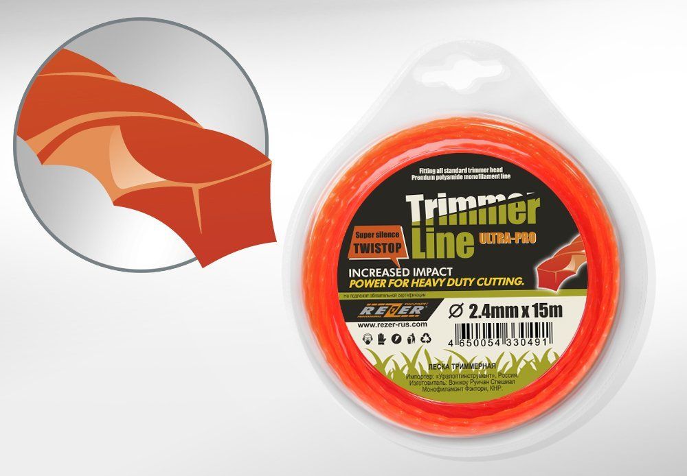 В комплект входит профессиональная леска TWISTOP квадратного сечения. Особая витая форма снижает шум и вибрацию.
