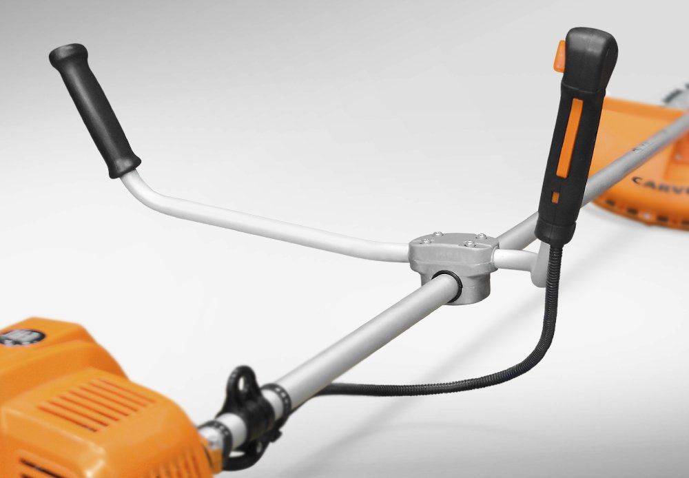 При том, что в рабочем положении коса находится справа от оператора, руль такого типа позволяет удерживать её естественным хватом. Таким образом минимизируется нагрузка на мышцы спины и поясницы, что особенно важно в длительном рабочем процессе.