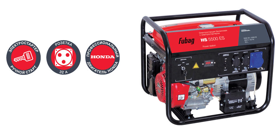 Наклонный металлический козырек над приборной панелью обеспечивает дополнительную защиту элементов панели от неблагоприятных погодных условий.Бензиновый генератор FUBAG HS 5500 ES в продаже по цене 0 руб. в Интернет-магазине Проф-инструмент с доставкой в Челябинске и Челябинской области. Звоните по телефону +8 (800) 302-10-51.
