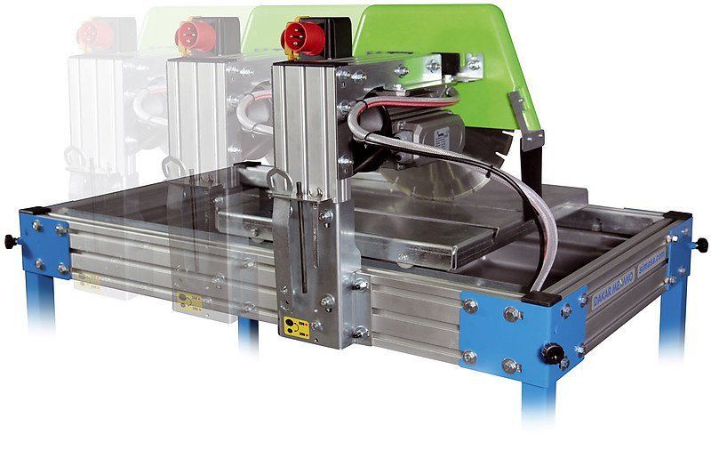 Камнерезный станок SIMA Dakar Mekano с однофазным или трехфазным электроприводом мощностью 2.2 или 3.0 кВт для обработки строительных полуфабрикатов на объектах строительства. Станок прекрасно справляется с распиливанием кирпича, кафеля, плитки, гранитных камней, пенобетона и других материалов длиной до 650 и высотой до 125 мм. Особенностью этого станка является возможность перемещения станины вдоль длины стола. Это обеспечивает большое удобство при работе с полуфабрикатами различной длины и формы. Станок выполнен из алюминиевых деталей, стойких к коррозии и механическим повреждением, поэтому станок уместно использовать на строительном объекте рядом с работами.