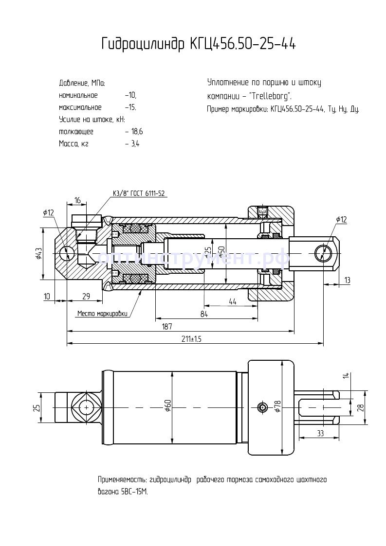 Гидроцилиндр для рабочего тормоза самоходного шахтного КГЦ 456.50-25-44 в продаже по цене 5 295 руб. в Интернет-магазине Проф-инструмент с доставкой в Челябинске и Челябинской области. Звоните по телефону +8 (800) 302-10-51.