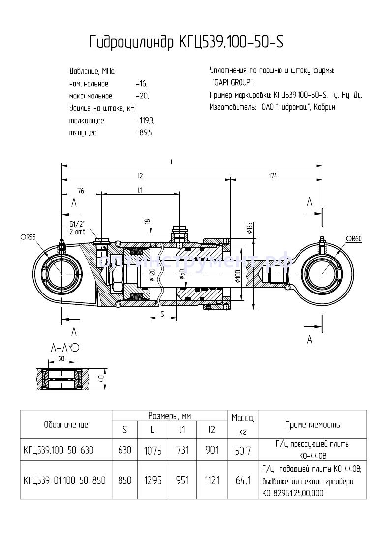 Гидроцилиндр КГЦ 539.100-50-630 в продаже по цене 22 425 руб. в Интернет-магазине Проф-инструмент с доставкой в Челябинске и Челябинской области. Звоните по телефону +8 (800) 302-10-51.