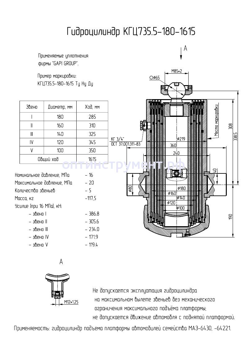 Гидроцилиндр КГЦ 735.5-180-1615 в продаже по цене 86 790 руб. в Интернет-магазине Проф-инструмент с доставкой в Челябинске и Челябинской области. Звоните по телефону +8 (800) 302-10-51.