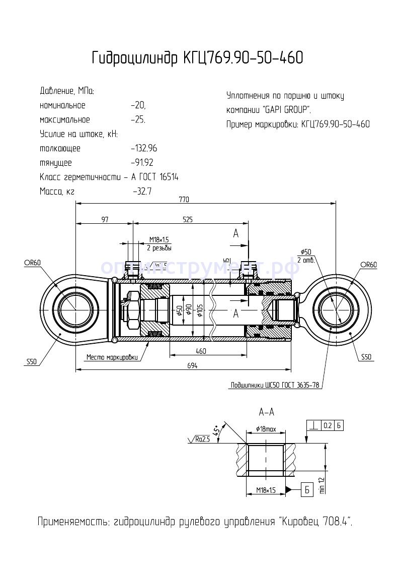 Гидроцилиндр КГЦ 769.90-50-460 в продаже по цене 19 080 руб. в Интернет-магазине Проф-инструмент с доставкой в Челябинске и Челябинской области. Звоните по телефону +8 (800) 302-10-51.