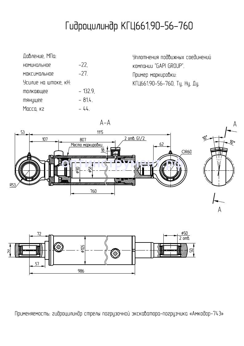 Гидроцилиндр стрелы погрузочной экскаватора-погрузчика «Амкодор-743» КГЦ 661.90-56-760 в продаже по цене 22 440 руб. в Интернет-магазине Проф-инструмент с доставкой в Челябинске и Челябинской области. Звоните по телефону +8 (800) 302-10-51.