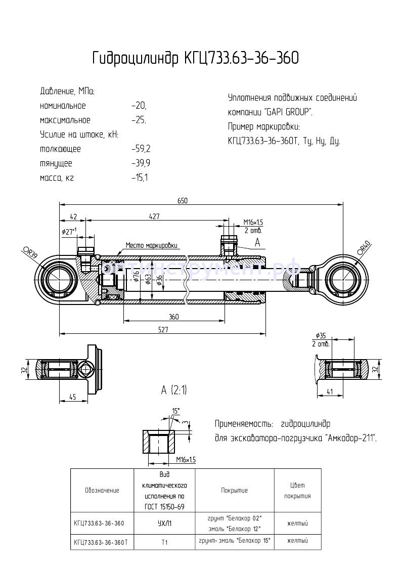 Гидроцилиндр для экскаватора-погрузчика "Амкодор-211" КГЦ 733.63-36-360 в продаже по цене 10 830 руб. в Интернет-магазине Проф-инструмент с доставкой в Челябинске и Челябинской области. Звоните по телефону +8 (800) 302-10-51.