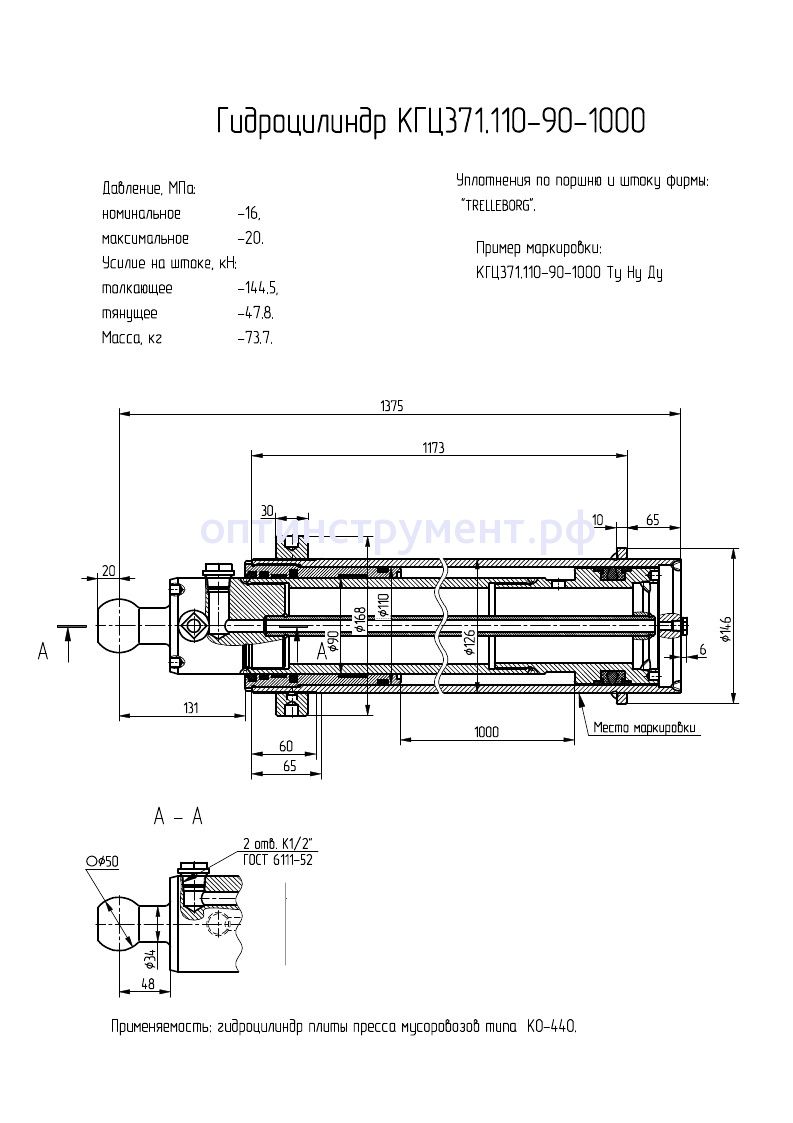 Гидроцилиндр плиты пресса мусоровозов типа "КО-440" КГЦ 371.110-90-1000 в продаже по цене 0 руб. в Интернет-магазине Проф-инструмент с доставкой в Челябинске и Челябинской области. Звоните по телефону +8 (800) 302-10-51.