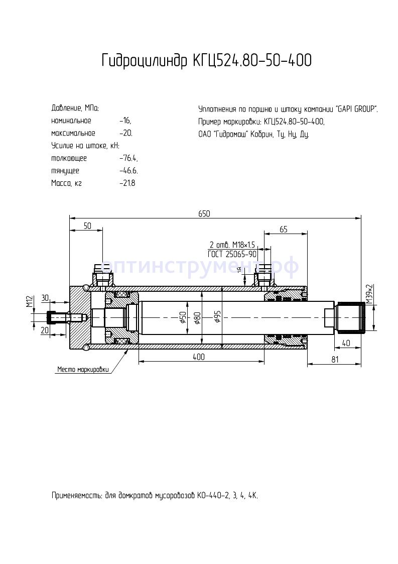 Гидроцилиндр для домкратов мусоровозов КГЦ 524.80-50-400 в продаже по цене 11 865 руб. в Интернет-магазине Проф-инструмент с доставкой в Челябинске и Челябинской области. Звоните по телефону +8 (800) 302-10-51.