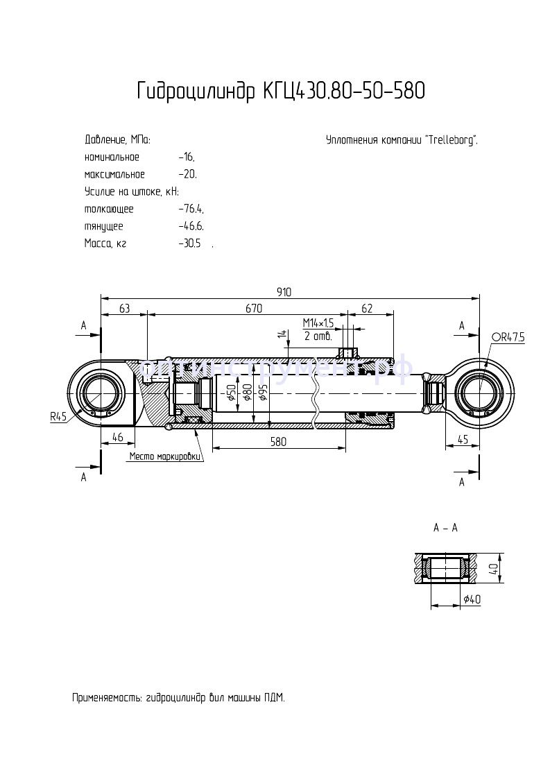 Гидроцилиндр вил машины "ПДМ" КГЦ 430.80-50-580 в продаже по цене 15 540 руб. в Интернет-магазине Проф-инструмент с доставкой в Челябинске и Челябинской области. Звоните по телефону +8 (800) 302-10-51.