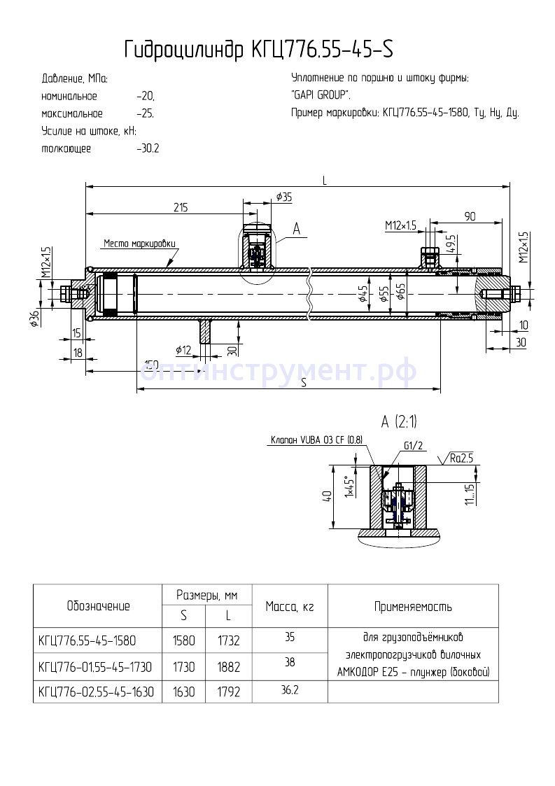 Гидроцилиндр для грузоподъёмников электропогрузчиков вилочных АМКОДОР Е25 - плунжер (боковой) КГЦ 776.55-45-1580 в продаже по цене 0 руб. в Интернет-магазине Проф-инструмент с доставкой в Челябинске и Челябинской области. Звоните по телефону +8 (800) 302-10-51.