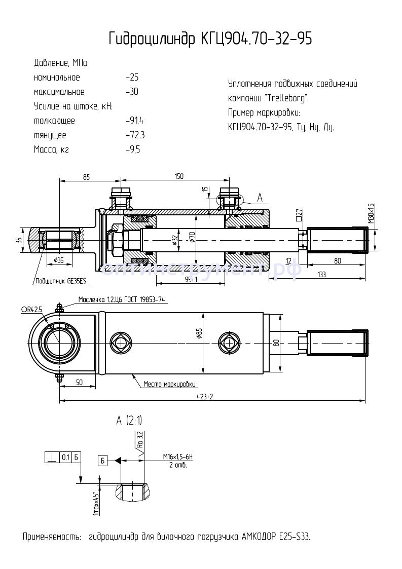 Гидроцилиндр для вилочного погрузчика "Амкодор Е25-S33" КГЦ 904.70-32-95 в продаже по цене 0 руб. в Интернет-магазине Проф-инструмент с доставкой в Челябинске и Челябинской области. Звоните по телефону +8 (800) 302-10-51.