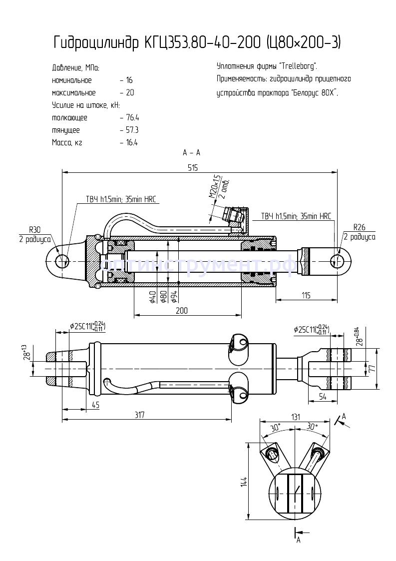 Гидроцилиндр прицепного устройства трактора "Белорус 80Х" КГЦ 353.80-40-200 в продаже по цене 11 235 руб. в Интернет-магазине Проф-инструмент с доставкой в Челябинске и Челябинской области. Звоните по телефону +8 (800) 302-10-51.