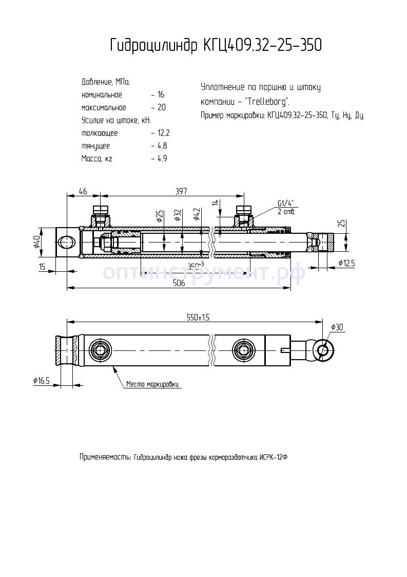Гидроцилиндр ножа фрезы кормораздатчика "ИСРК-12Ф" КГЦ 409.32-25-350 в продаже по цене 0 руб. в Интернет-магазине Проф-инструмент с доставкой в Челябинске и Челябинской области. Звоните по телефону +8 (800) 302-10-51.