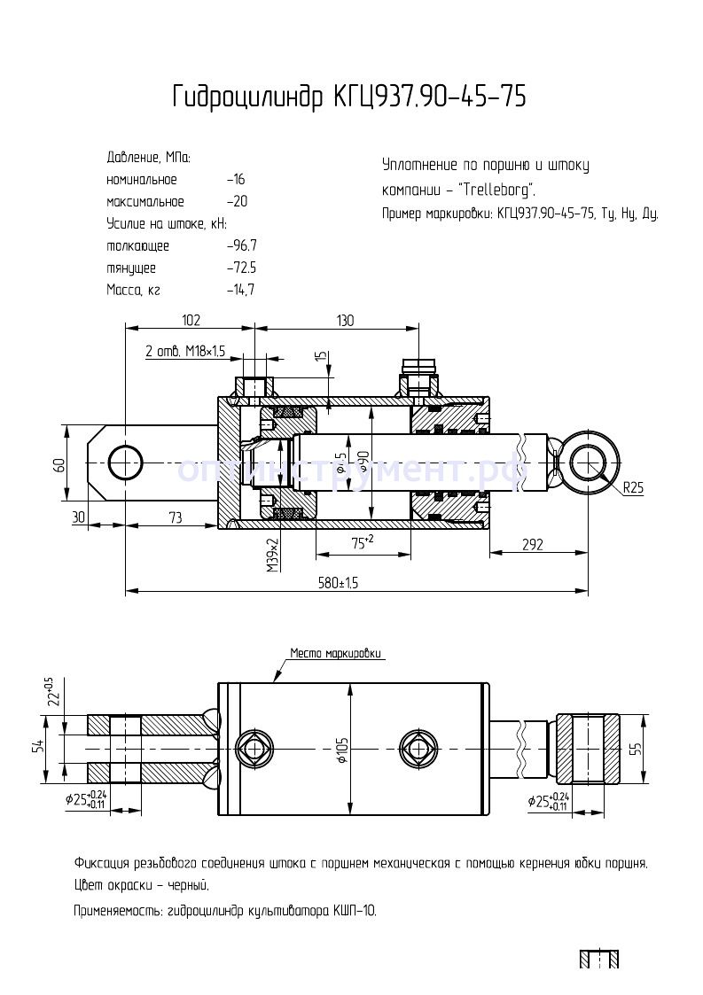 Гидроцилиндр на культиватор КШП-10 (Элезер) КГЦ 937.90-45-75 в продаже по цене 0 руб. в Интернет-магазине Проф-инструмент с доставкой в Челябинске и Челябинской области. Звоните по телефону +8 (800) 302-10-51.