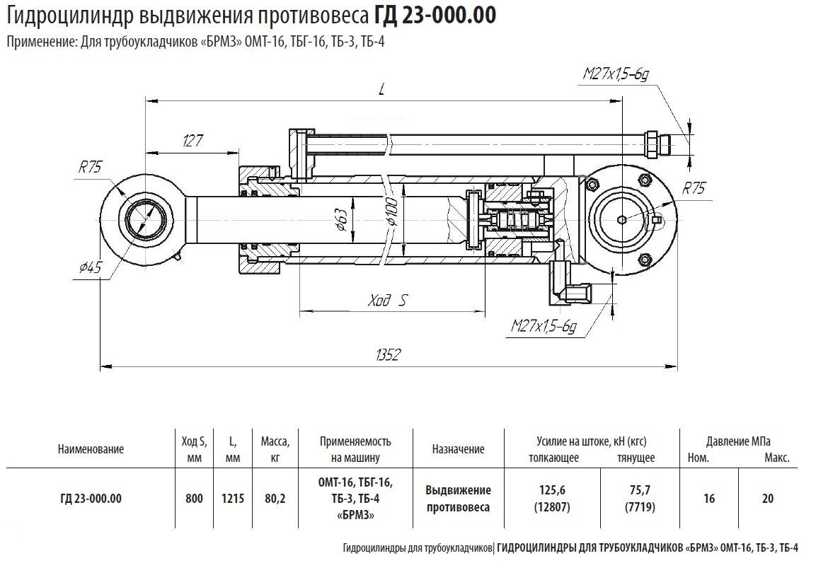 Гидроцилиндр выдвижения противовеса ГД 23-000.00 в продаже по цене 0 руб. в Интернет-магазине Проф-инструмент с доставкой в Челябинске и Челябинской области. Звоните по телефону +8 (800) 302-10-51.