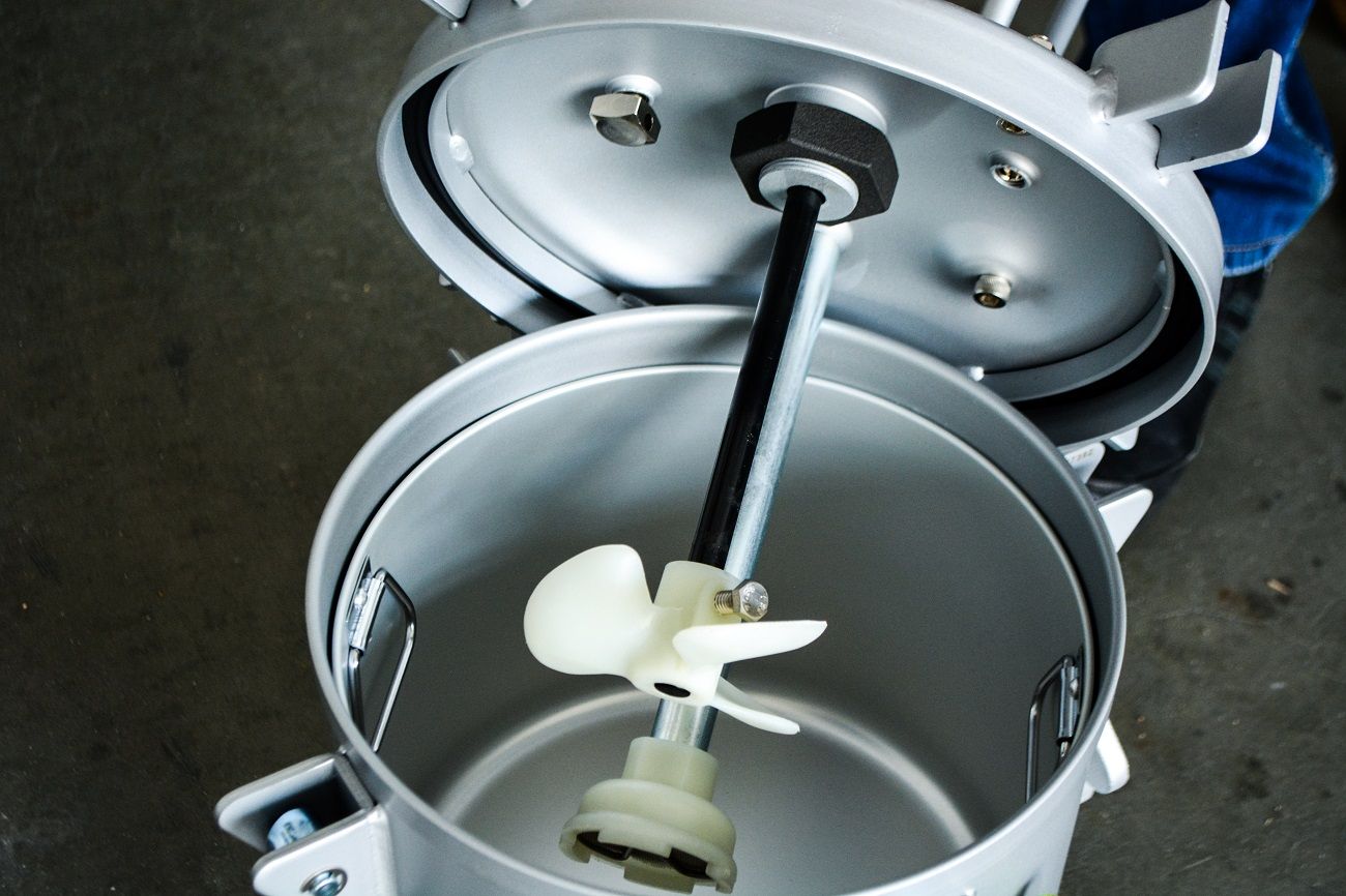 Предназначен для подачи готового, тщательно перемешенного лакокрасочного материала к краскораспылителям при производстве окрасочных работ, а также для перемешивания находящегося в нем ЛКМ. Бак укомплектован автоматическими пневмомешалками, проводом заземления, усиленными колесами, двойным шлангом для распылителя 5м с фитингами, вставной емкостью из нержавеющей стали, предохранительным клапаном.