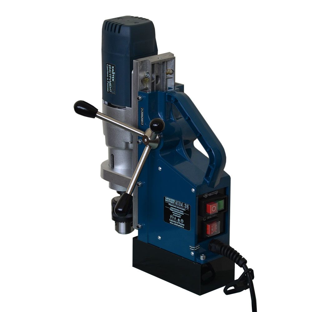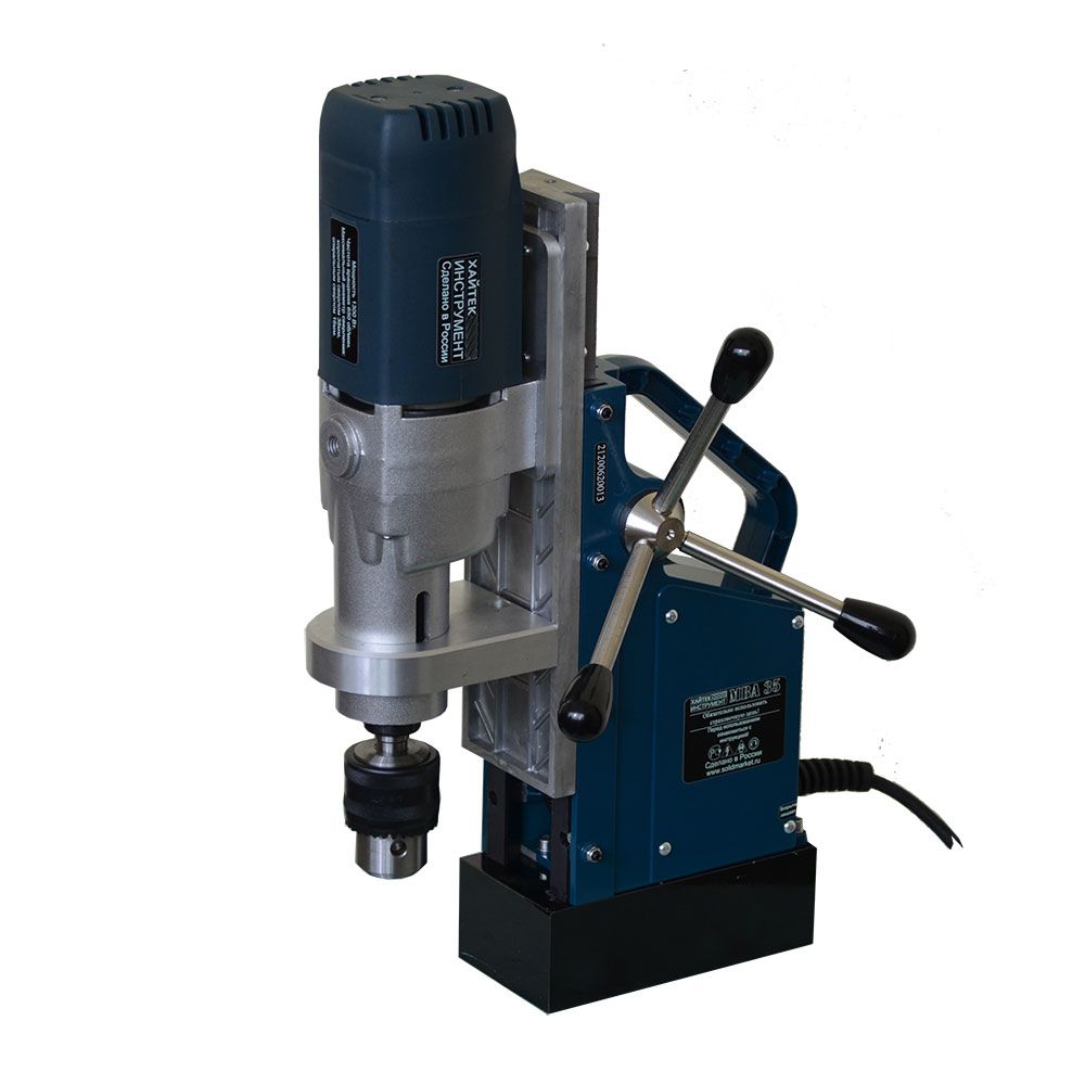 Сверлильный станок на магнитной подошве MBA-35 выпускается с 2013 года. В основу этой модели легли наработки, использованные в более дорогом и профессиональном МВА-50. Таким образом, эти сверлильные станки на магнитном основании отличаются только электроприводами и комплектацией: магнитный сверлильный станок MBA-35 оснащен электроприводом Резекненского Акционерного Общества REBIR. Электропривода этой марки широко известны в России, запасные части к ним распространены и доступны по относительно невысоким ценам.