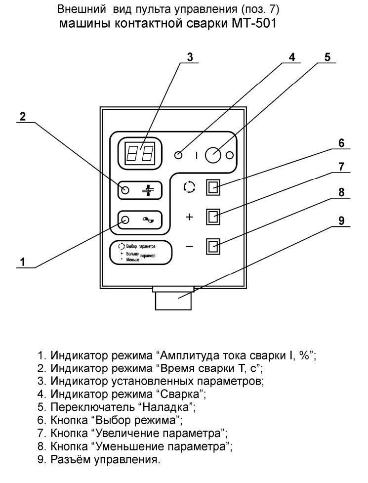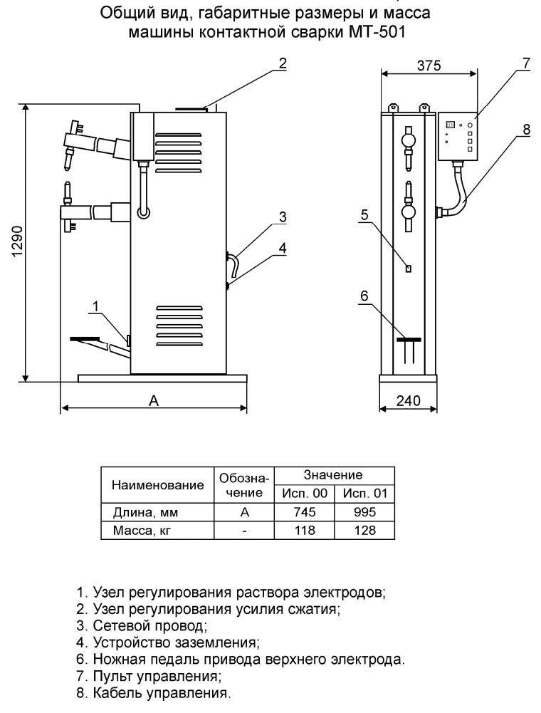 МТ-501 предназначена для контактной точечной сварки изделий из малоуглеродистых и низколегированных сталей на переменном токе.