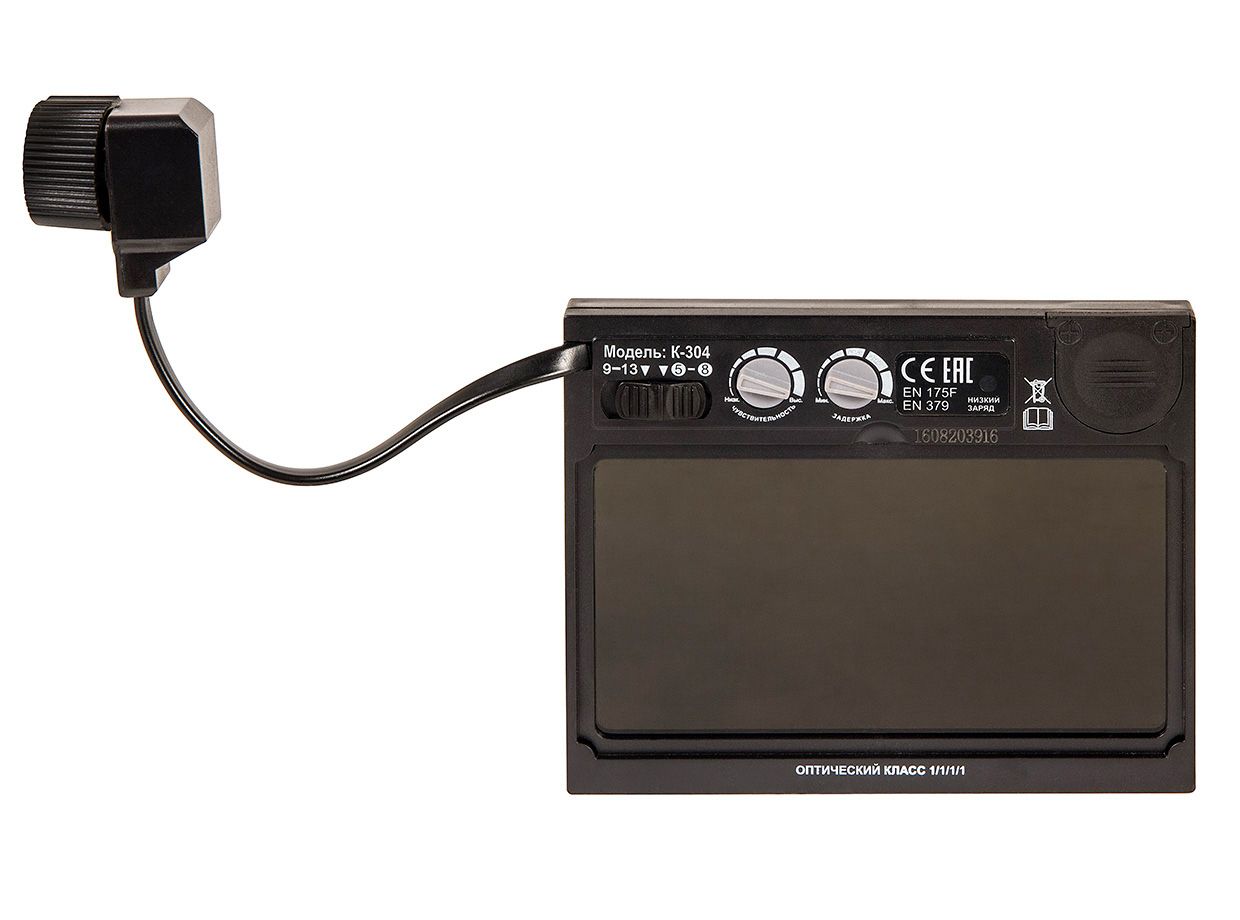 Благодаря наличию 4-х независимых дуговых сенсоров, маска К-304 четко срабатывает при поджиге дуги на минимальных токах. Маска имеет специальную конструкцию, предотвращающую запотевание экрана. Также обладает расширенной зоной обзора по сравнению с предыдущими моделями.