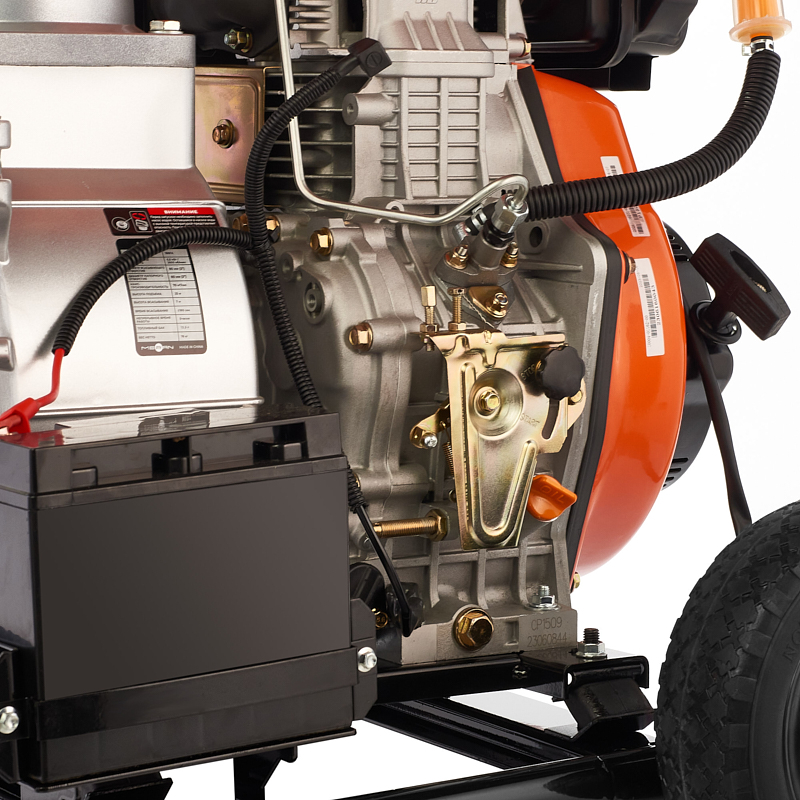 Дизельная мотопомпа, для сильно загрязненных вод (откачка строительных котлованов, осушение болот и ликвидация затоплений) лёгкосъёмная передняя крышка для очистки насосной части при засорении. Двигатель 186FAE Макс. мощность 9,7 лс, Производительность 70 м³/час , напор 25 м, D вх/вых 80 мм, размер частиц 30 мм, бак 12,5 л