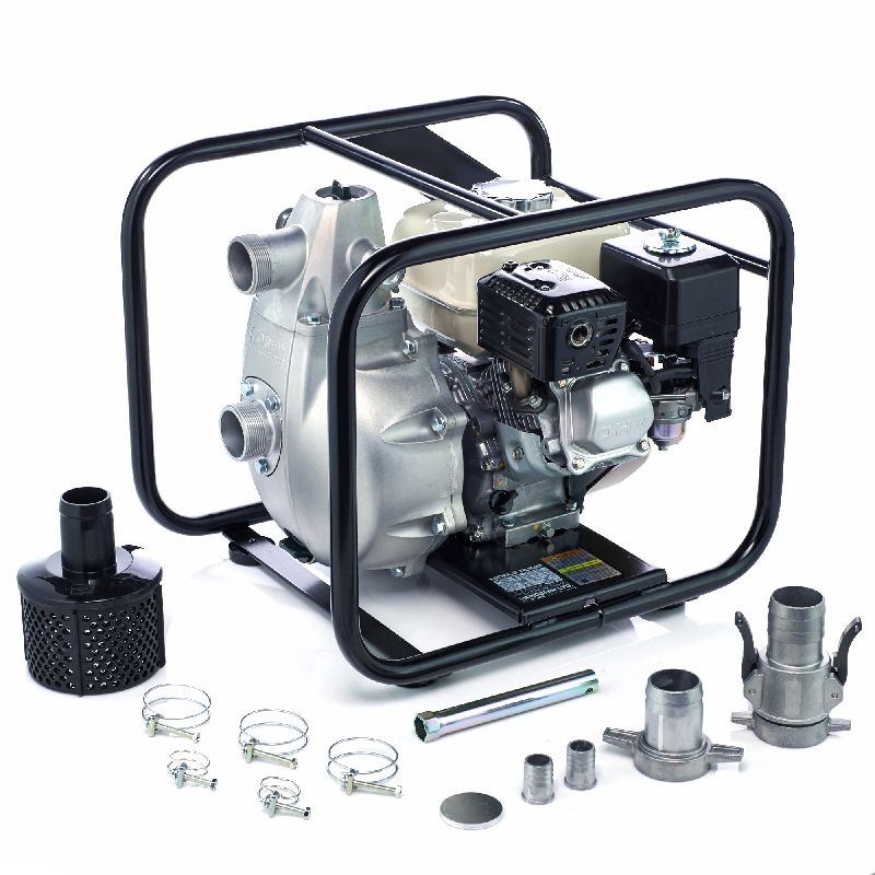 Самая высоконапорная, пожарная бензиновая мотопомпа. Тушение пожаров, перекачка воды на дальние растояние, полив. Мощность 5,0 лс, Производительность 30,0 куб м/час, напор 90 м, двигатель Honda GX200 Hi Revolution с датчиком масла в картере , D вх/вых 50/50-25-25 мм, размер частиц 6 мм, бак 3.1 л.