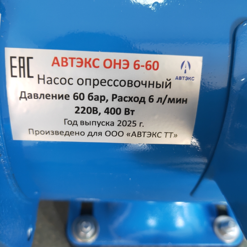 - Насос испытательный электрический «АВТЭКС» ОНЭ-6-60 в сборе;