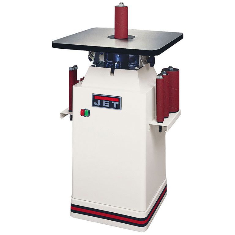 Стандартная комплектация включает в себя 10 шлифовальных шпинделей с диаметром от 6 до 100 миллиметров, а также кольцевые вставки в рабочий стол с круглым и овальным отверстием (для работы в наклонном положении стола). Расходный материал – абразивные гильзы – предлагаются со склада Jet в широком ассортименте.