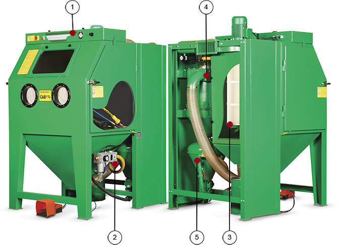 - цельнометаллическая сварная кабина с установленной на циклоне-регенераторе системой формирования абразиво-воздушной смеси;