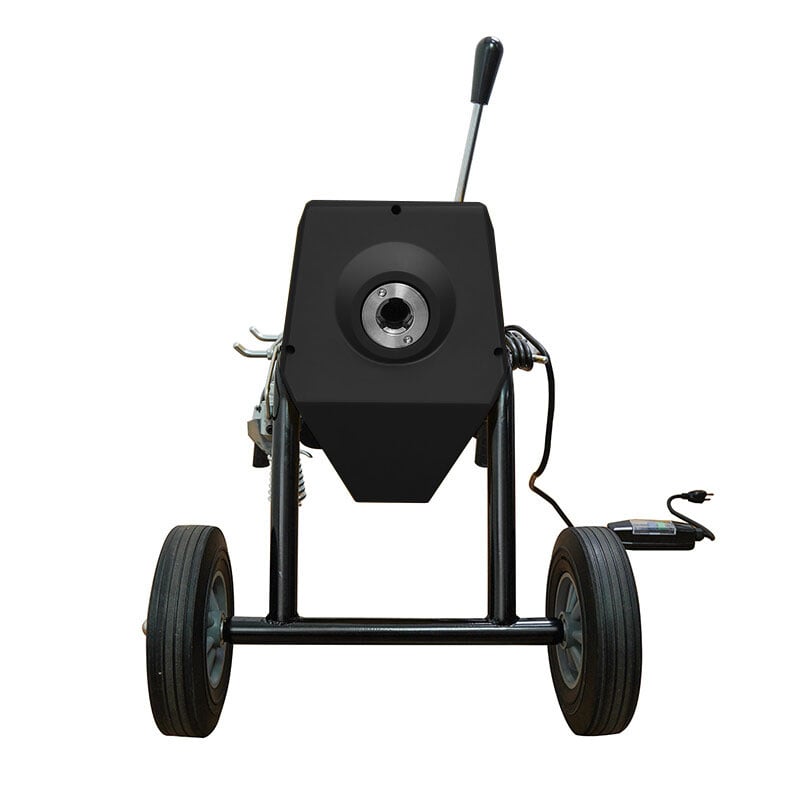 Агрегат оснащен электродвигателем мощностью 350 Вт, который обеспечивает высокий крутящий момент для эффективной прочистки. Ключевое преимущество модели — автоматическая система подачи и обратной намотки троса. Это не только экономит время и силы оператора, но и обеспечивает безопасность и контроль над процессом.