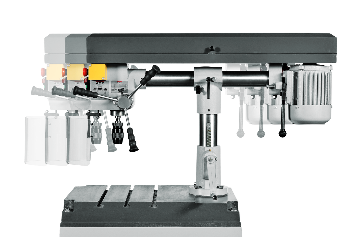 Jet JRD-387A — радиально-сверлильный станок промышленного класса, предназначенный для работы с любыми материалами (металл, древесина, пластики, композиты и т.п.). Имеет жесткую, прочную и массивную конструкцию, которая обеспечивает точность, отсутствие вибраций и долговечность. Поставляется в комплекте с металлической тумбой-подставкой, одновременно служащей вместительным отсеком для хранения принадлежностей и инструментов.