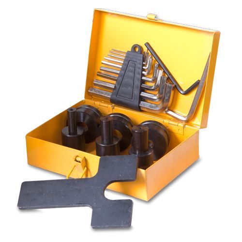 - Диаметры отверстий получаемые входящими в комплект матрицами, дюймы (мм): 3/8” (10.5); 1/2”(13.8); 5/8” (17); 3/4” (20.5).