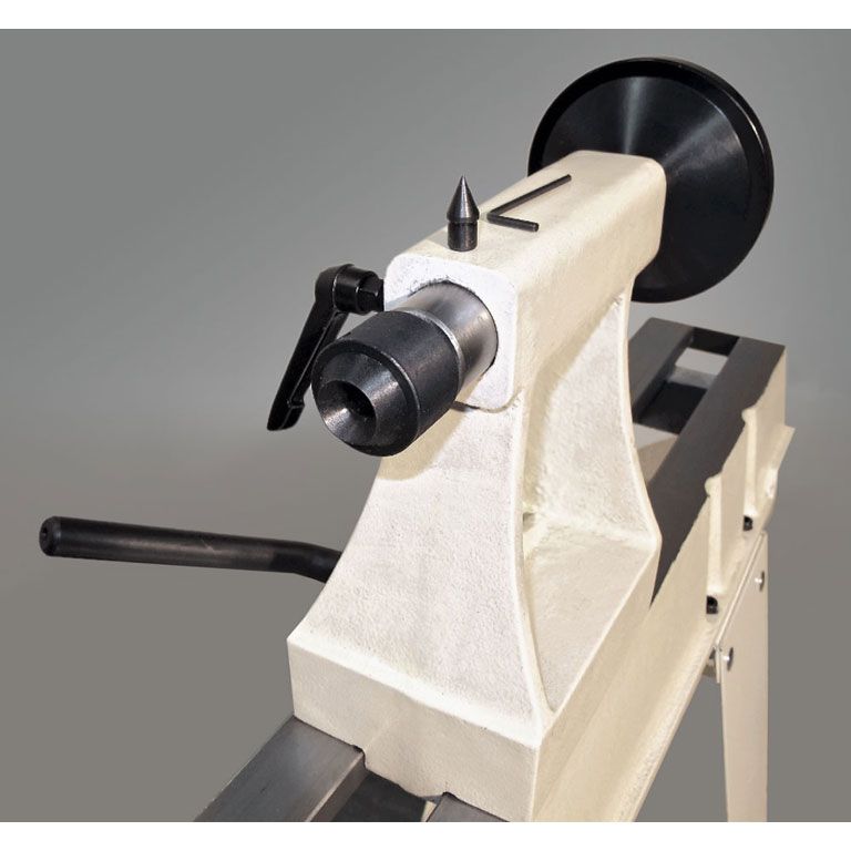 Полезная особенность станка – возможность поворота передней бабки вокруг вертикальной оси. Благодаря чему можно закреплять на планшайбе (входит в комплект) и обтачивать заготовки диаметром больше, чем размер над станиной. При этом ключевое значение приобретает конструкция подручника. Он имеет три степени свободы и собран из массивных литых деталей; все это позволяет пользоваться опорой и при точении сбоку станины. В некоторых случаях пригодится и возможность передвинуть переднюю бабку вдоль станины.