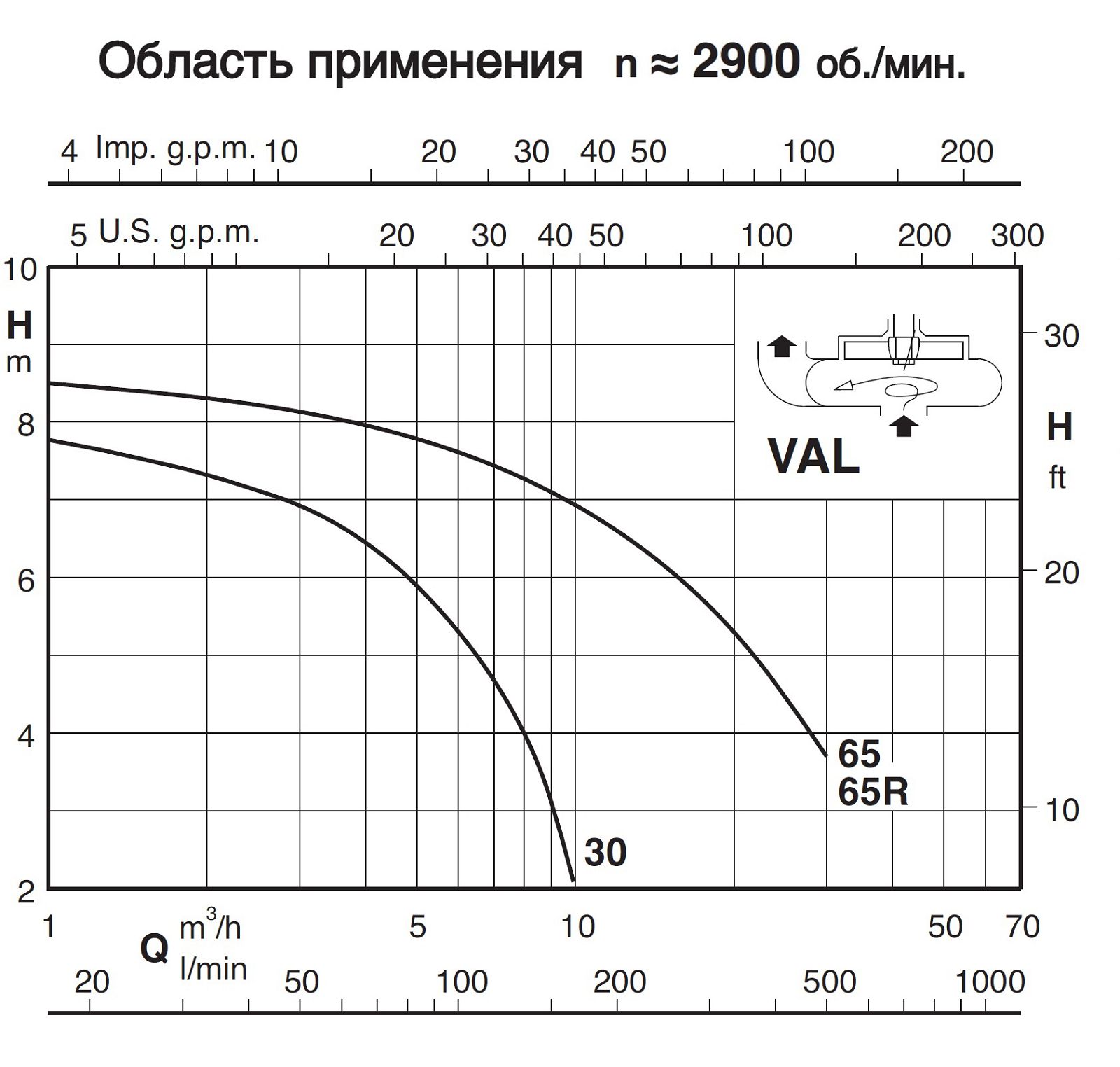 Насосные агрегаты типа VAL - вертикальные полупогружные с осаженным рабочим колесом (вихревого типа). Корпус насоса и рабочее колесо выполнены из чугуна.